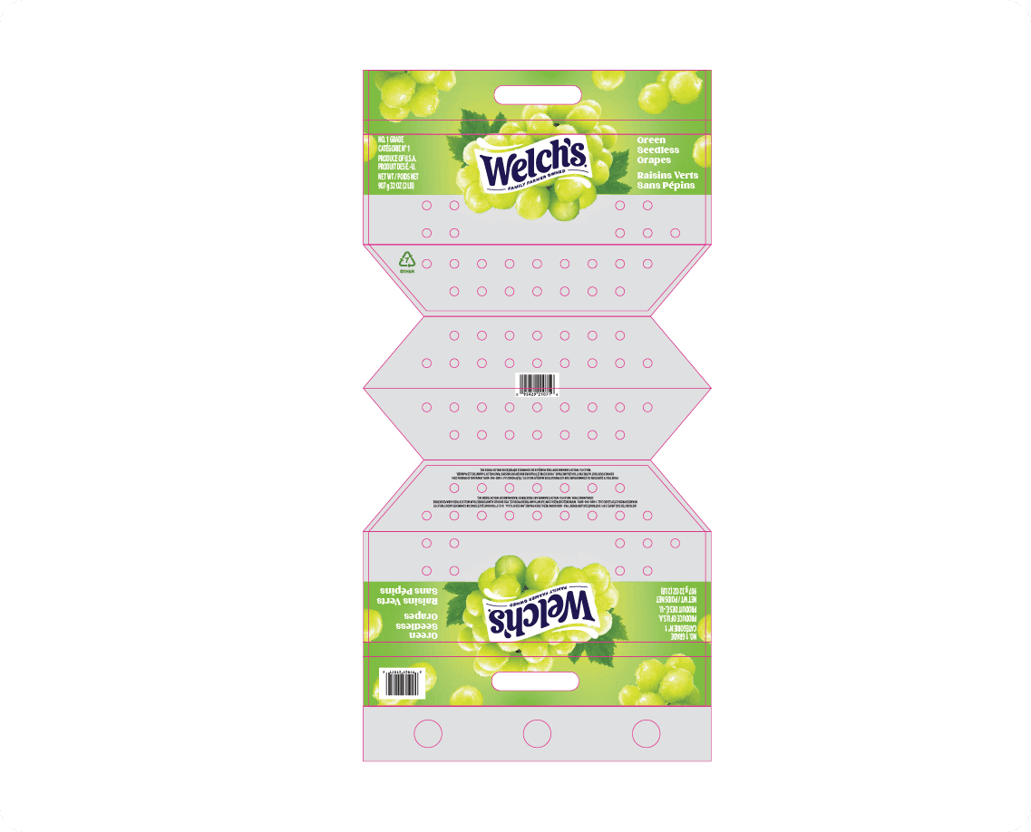 I was working within established brand guidelines and specific dieline dimensions. The Welch's logo had to remain prominent, the fruit imagery needed visible water droplets, and everything had to work across multiple formats: clamshells, stand-up pouches, and various bag sizes.